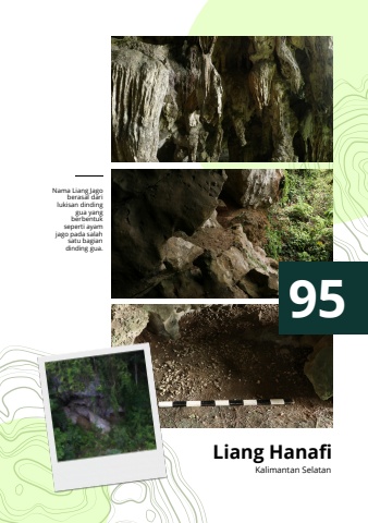 Liang HanafiKalimantan Selatan95Nama Liang Jagoberasal darilukisan dindinggua yangberbentukseperti ayamjago pada salahsatu bagiandinding gua.