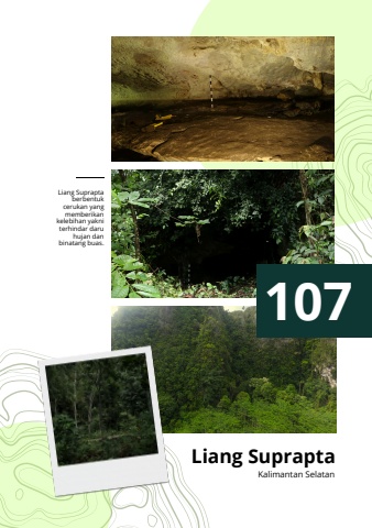 Liang SupraptaKalimantan Selatan107Liang Supraptaberbentukcerukan yangmemberikankelebihan yakniterhindar daruhujan danbinatang buas.