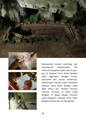 12Berdasarkan kondisi morfologi dankemampuan menyesuaikan dirimanusia prasejarah pada saat itu guagua di kawasan karst Bukit Bangkailayak digunakan sebagai hunianpermanen dan hunian sementara.Diperkirakan mereka sudah mendiamikawasan karst Bukit Bangkai sejak6000 tahun lalu. Dengan temuankuburan manusia di Bukit LiangBangkai 10 dapat diduga manusiayang menghuni kawasan karst BukitBangkai berasal dari ras Mongoloid.