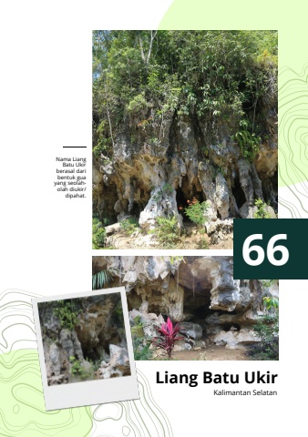 66Liang Batu UkirKalimantan SelatanNama LiangBatu Ukirberasal daribentuk guayang seolaholah diukir/dipahat.